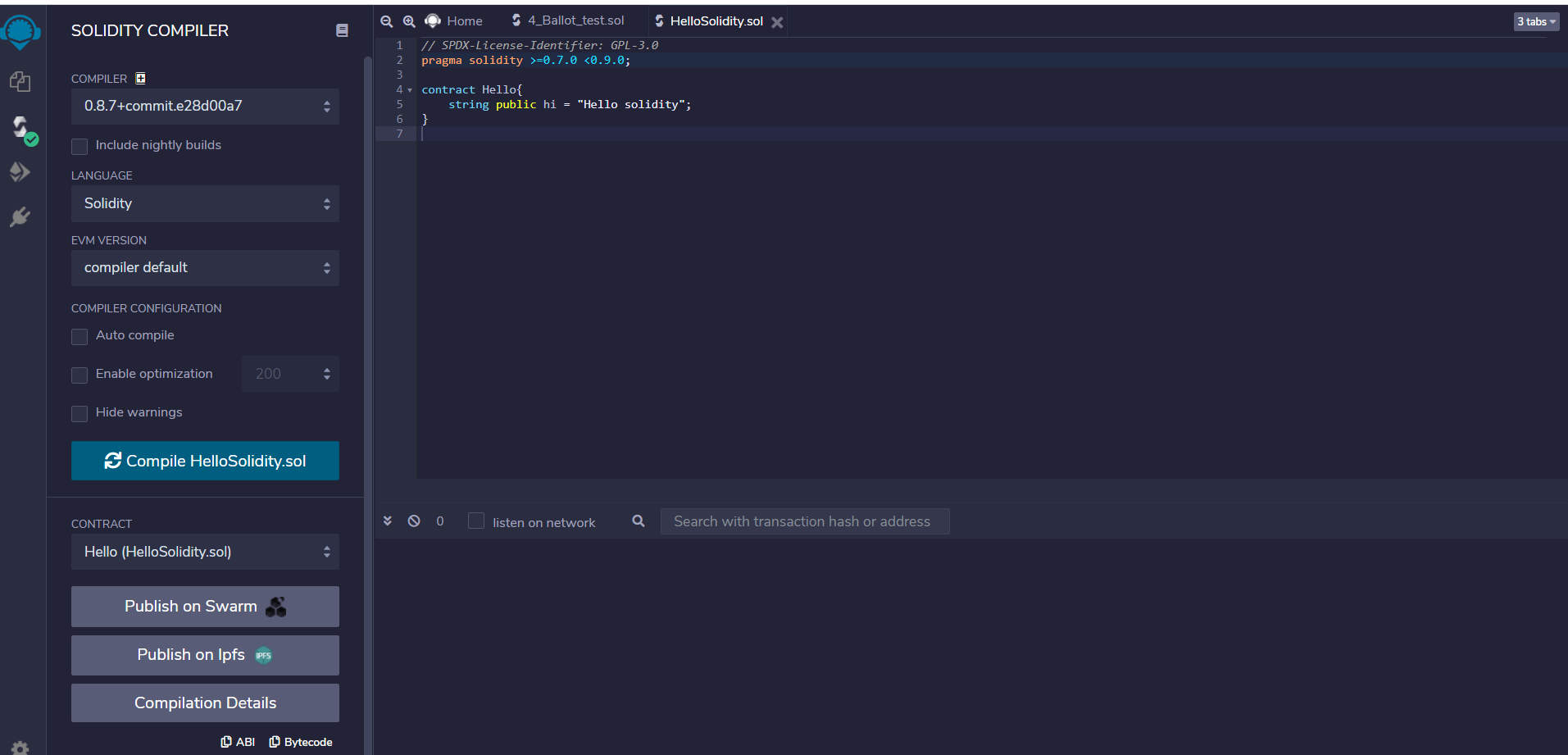 오늘의 목표는 Hello Solidity 를 출력 하는 거랍니다.