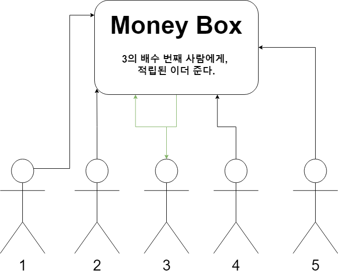 4. 3의 배수 번째 사람에게만 적립된 이더를 준다.