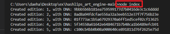 growEditionSizeTo을 10으로 변경하고나서, 터미널창에 nodex index를 입력하면 10개의 그림이 생성될 것이다.